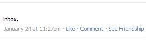 Oh you little superficial stalker. Pity. Your home page refreshes and you see one of your friends has walled another, writing nothing but “inbox”. In protest you let out a nasal snigger of disapproval. You grudgingly think the only reason Jack wrote “inbox” on Jill’s wall was to let their notification starved audience know they are tastefully “inboxing.” How vain. Firstly, Jack, if you’re “inboxing” it’s meant to be private; so keep it private. We don’t care (why then are you sniggering?) that you two inbox each other all week. Jill isn’t mentally challenged to not know that she got an inbox from you, Jack, without you making it conspicuously obvious by obsessively writing “inbox” on her wall.